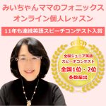 オンライン英会話フォニックス個人レッスン|子ども〜大人|小学生に強い|11年連続入賞|みいちゃんママ 10月31日までに体験の方に限り入会金無料キャンペーン実施中。 すっ、すごっ! 11年も連続英語スピーチコンテスト受賞! 全国1位に導いた「みいちゃんママ(妹尾佳江)」のオンライン英会話フォニックス子供おすすめ個人レッス … “オンライン英会話フォニックス個人レッスン|子ども〜大人|小学生に強い|11年連続入賞|みいちゃんママ” の続きを読む