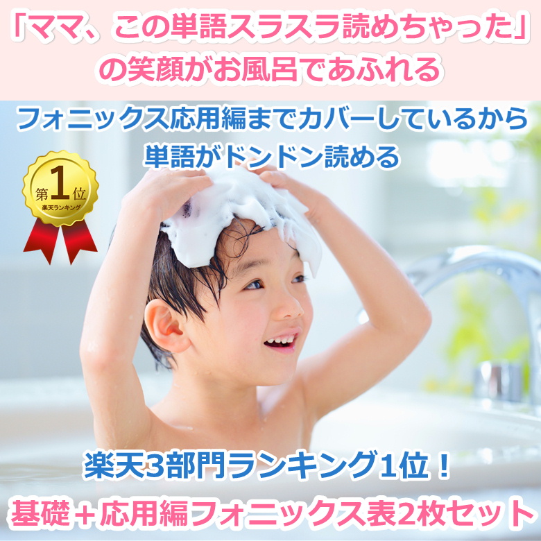 お風呂の壁に貼れば、お風呂で毎日親子で気持ちよ~く、確実にフォニックスが学べます。
